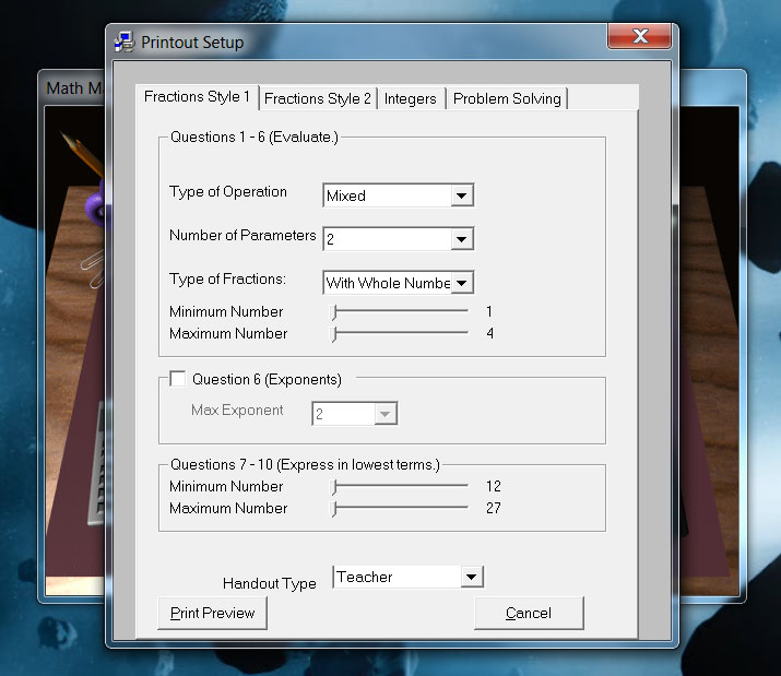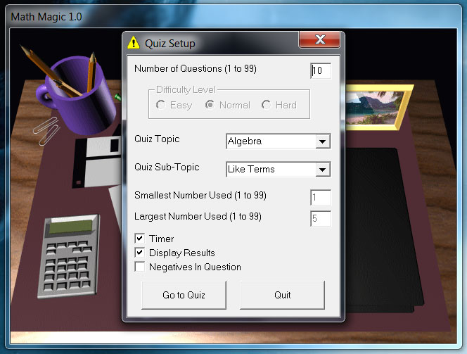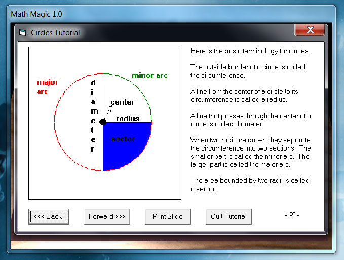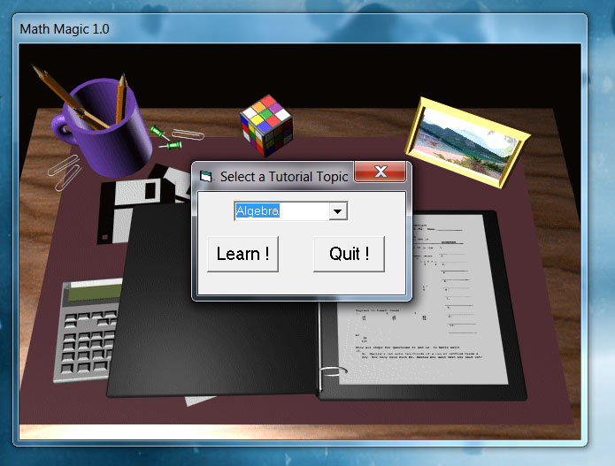 Math Magic is a program developed several years ago as a teaching aid for math teachers. The premise of the program was to make repeative tasks such as printing out tests and teaching basic concepts in a more intuitive way. Now that we are in the comupter age much of the teaching done using computers to teach their students on LCD projectors, as opposed to just using the chalk board or whiteboard. By using this program, a student can learn various math concepts and learn at their own pace with on-screen tutorials and even print-out sample quizes. Watch the larger video demo of Math Magic on YouTube here During the development of Math Magic much of the focus was approched from the teachers point-of-view and what they would need in order to make their job easier. Although this was the main focus, much of the program is catered towards students and the self-teaching approach. Math Magic was presented to the math department of select highschools and the feedback was positive. It is still being considered for improvement and possible further releases. Features: Learning base: |